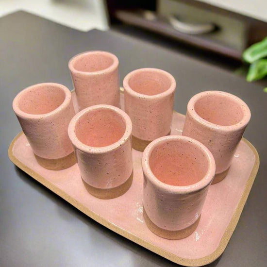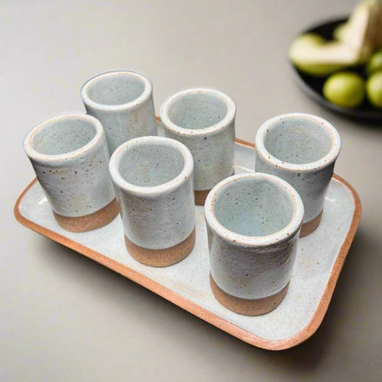 This set of light blue ceramic cups comes with a convenient tray, perfect for serving and display. Crafted with high-quality materials, these cups are both durable and stylish. The beautiful light blue color is sure to add a touch of elegance to any table setting. Enjoy your favorite beverages in style with this lovely set.